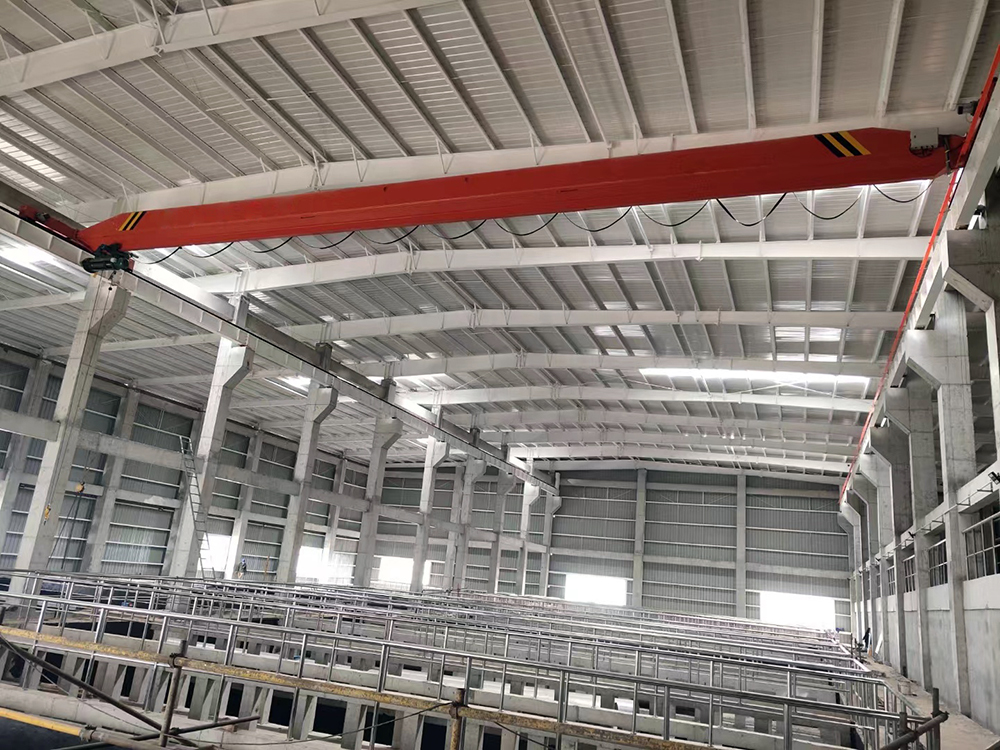 單梁橋式起重機(jī)是橫架于車間、倉庫和料場(chǎng)上空進(jìn)行物料吊運(yùn)的起重設(shè)備。由于它的兩端坐落在高大的水泥柱或者金屬支架上,形狀似橋。單梁橋式起重機(jī)的橋架沿鋪設(shè)在兩側(cè)高架上的軌道縱向運(yùn)行,可以充分利用橋架下面的空間吊運(yùn)物料,不受地面設(shè)備的阻礙。它是使用范圍廣、數(shù)量多的一種起重機(jī)械。