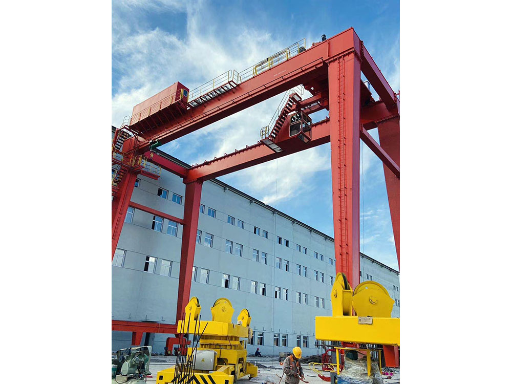 它的金屬結構像門形框架,承載主梁下安裝兩條支腳,可以直接在地面的軌道上行走,主梁兩端可以具有外伸懸臂梁。